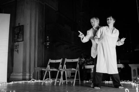 Un uomo e una donna si ritrovano dopo la morte in un non luogo che non è il paradiso, ma nemmeno l’inferno. I due personaggi rivedono alcuni passaggi della loro vita in un’ottica completamente differente: ora tutto è diverso. Registi e interpreti della pièce sono Giada Generali e Carlo Zanotti, mentre il testo è di Jacob Olesen e Giovanna Mori.