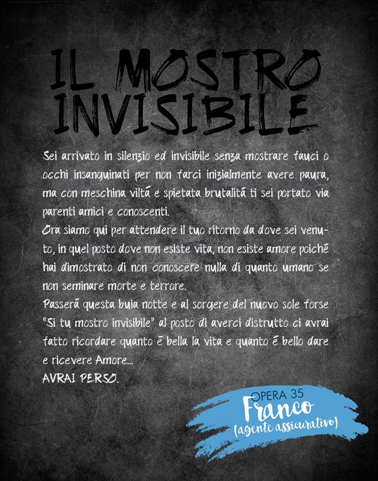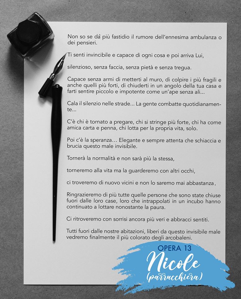 Ideato dalla pizzighettonese Sara Sghirinzetti, laureata in Comunicazione e Didattica dell’Arte presso l’Accademia di Brera e studentessa del biennio specialistico di terapeutica artistica, il progetto vuole veicolare attraverso il linguaggio dell’arte questo particolare e doloroso momento storico, fatto di angoscia e preoccupazione, ma anche di riflessione e di spunti che dobbiamo essere in grado di cogliere.