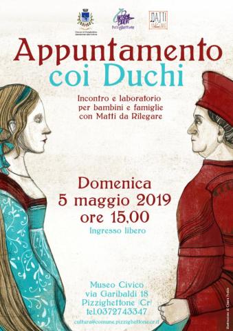 Domenica 5 maggio tra le 15 e le 18 si terrà, presso il Museo Civico di Pizzighettone, l'iniziativa "Appuntamento coi Duchi", nata dalla collaborazione tra Museo Civico e Punto Informagiovani di Pizzighettone e la casa editrice Matti da Rilegare.
