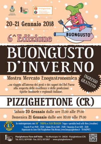 Torna in occasione della solennità patronale di San Bassiano Sabato 20 e Domenica 21 Gennaio 2018 nelle mura di via Boneschi, lungo un circuito espositivo interamente al coperto, la 6^ edizione di ‘BuonGusto d’Inverno’, rassegna enogastronomica promossa da Pizzighettone Fiere dell’Adda con l’obiettivo di riproporre anche durante il periodo invernale l’ormai collaudata e molto apprezzata mostra mercato ‘BuonGusto’ autunnale.