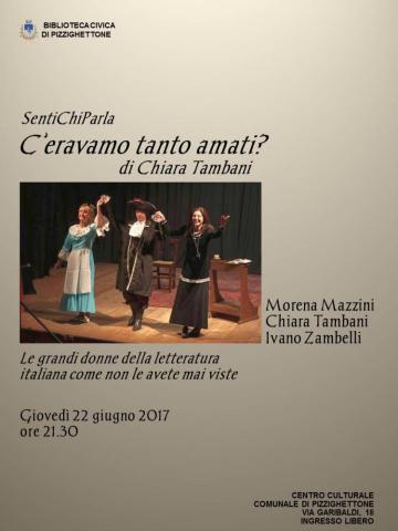 La pièce, scritta da Chiara Tambani e interpretata dai membri della compagnia SentiChiParla (Morena Mazzini, Chiara Tambani e Ivano Zambelli), è una divertente parodia dei grandi amori narrati nella letteratura italiana. Protagoniste sono quattro donne, rese immortali da altrettanti scrittori, che daranno al pubblico la loro versione di fatti universalmente noti. Scopriremo così, fra le altre cose, che a Beatrice sta un po’ stretta la definizione di “tanto gentile e tanto onesta”, che Francesca da Rimini non si trova così male all’Inferno e che la Monaca di Monza si è impegnata a risolvere una crisi coniugale tra Renzo e Lucia.