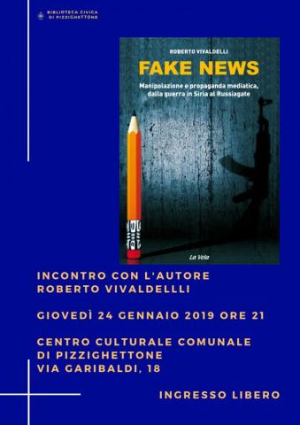 Giovedì 24 gennaio alle 21, presso il Centro Culturale Comunale di Pizzighettone si terrà un incontro col giornalista Roberto Vivaldelli, autore del libro Fake News. Manipolazione e propaganda mediatica, dalla guerra in Siria al Russiagate.