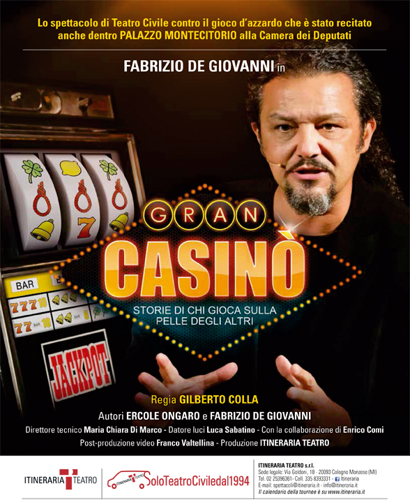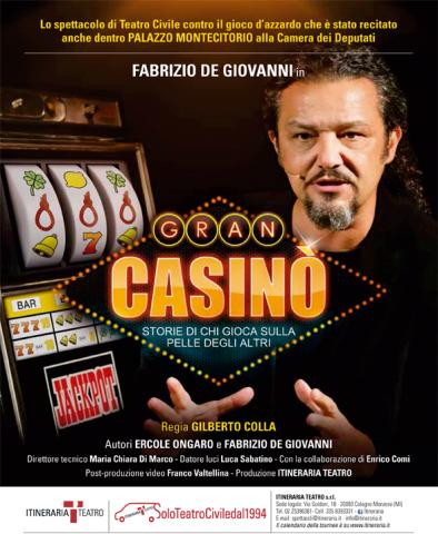 Gran Casinò racconta le storie di chi gioca sulla pelle degli altri e le sofferenza di quanti si perdono nel tunnel della dipendenza. Un'occasione per comprendere cosa si celi dietro un busines miliardario che stritola le sue vittime tra usura e criminalità. Una serata a teatro per sorridere amaro e imparare a stare alla larga dall'azzardo che, ricordiamo, non è un gioco.