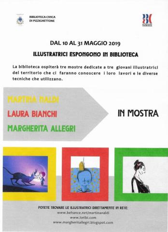 Illustratrici espongono in biblioteca: mostra di illustrazioni di Margherita Allegri, Laura Bianchi, Martina Naldi