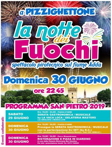 Il 30 giugno , alle ore 22,45, il Cavallino Club Pizzighettone organizza la Notte dei Fuochi, il tradizionale spettacolo pirotecnico sul fiume Adda che richiama ogni anno migliaia di persone dall'intera provincia di Cremona ma anche da quelle limitrofe di Lodi, Milano e Piacenza.