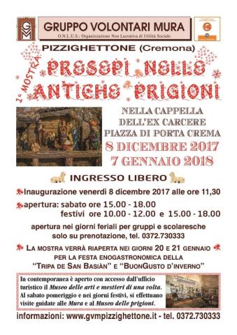 Inaugura l'8 dicembre, in una nuova location, la Mostra Presepi nelle Mura, che passa dal Museo Arti e Mestieri di una Volta di piazza D'Armi – dove gli spazi limitavano l'esposizione e dove comunque verranno allestite alcune Natività – ad una Casamatta dell’ex Ergastolo, della contigua piazza Porta Crema, precisamente nell'Ex Cappella dell'antico Carcere di Pizzighettone.