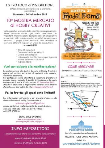 Domenica 24 settembre torna la Mostra Mercato di Hobby Creativi. La cerchia muraria di Pizzighettone si riempirà di colori con il tradizionale appuntamento per gli appassionati delle arti creative, giunto ormai alla 10^ edizione.