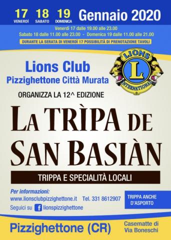 Si avvicina l'appuntamento con la XXII^ edizione de La Trìpa de San Basian organizzata dal Lions Club Pizzighettone Città Murata. La manifestazione si svolgerà interamente al coperto, all'interno delle Casematte di Via Boneschi, che, per l'occasione, verranno riscaldate da camini e allestite con tavoloni e panche in legno.