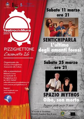 Sabato 11 marzo la rassegna Teatro alle Mura 2017 verrà inaugurata con la commedia L’ULTIMO DEGLI AMANTI FOCOSI, portata in scena dalla compagnia cremonese Sentichiparla.