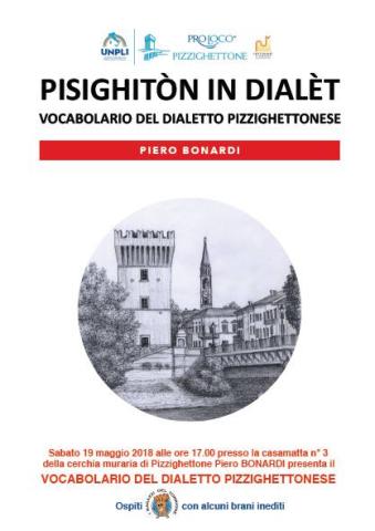 Si tratta di PISIGHITÒN IN DIALÈT - VOCABOLARIO DEL DIALETTO PIZZIGHETTONESE che l’autore ha realizzato in questi ultimi anni avvalendosi del prezioso aiuto dei tre Volontari del Servizio Civile UNPLI della PROLOCO, Roberto Borsotti, Riccardo Tansini e Alessia Negri e dei suggerimenti giunti da alcuni internauti del gruppo di Facebook “Pisighitòn in dialèt”, nel quale gli iscritti appassionati si incontrano virtualmente e discutono esclusivamente in dialetto pizzighettonese.