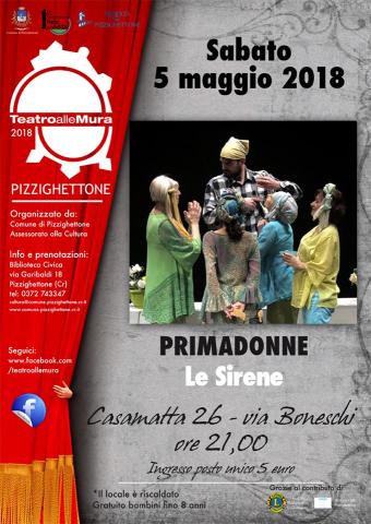 Sabato 5 maggio alle 21 il sipario di Teatro alle Mura 2018 si alzerà sulla compagnia cremonese Primadonne, che porterà in scena Le Sirene, un lavoro del drammaturgo Aldo Nicolaj: quattro signore della buona società discutono di beneficenza mentre prendono il tè sulla terrazza di un attico, ma l’incontro con un imbianchino svelerà la loro ipocrisia. Nella pièce serpeggia la pungente ironia verso il mondo contemporaneo e, in particolare, la società borghese e piccolo borghese, tipica della produzione di Nicolaj.